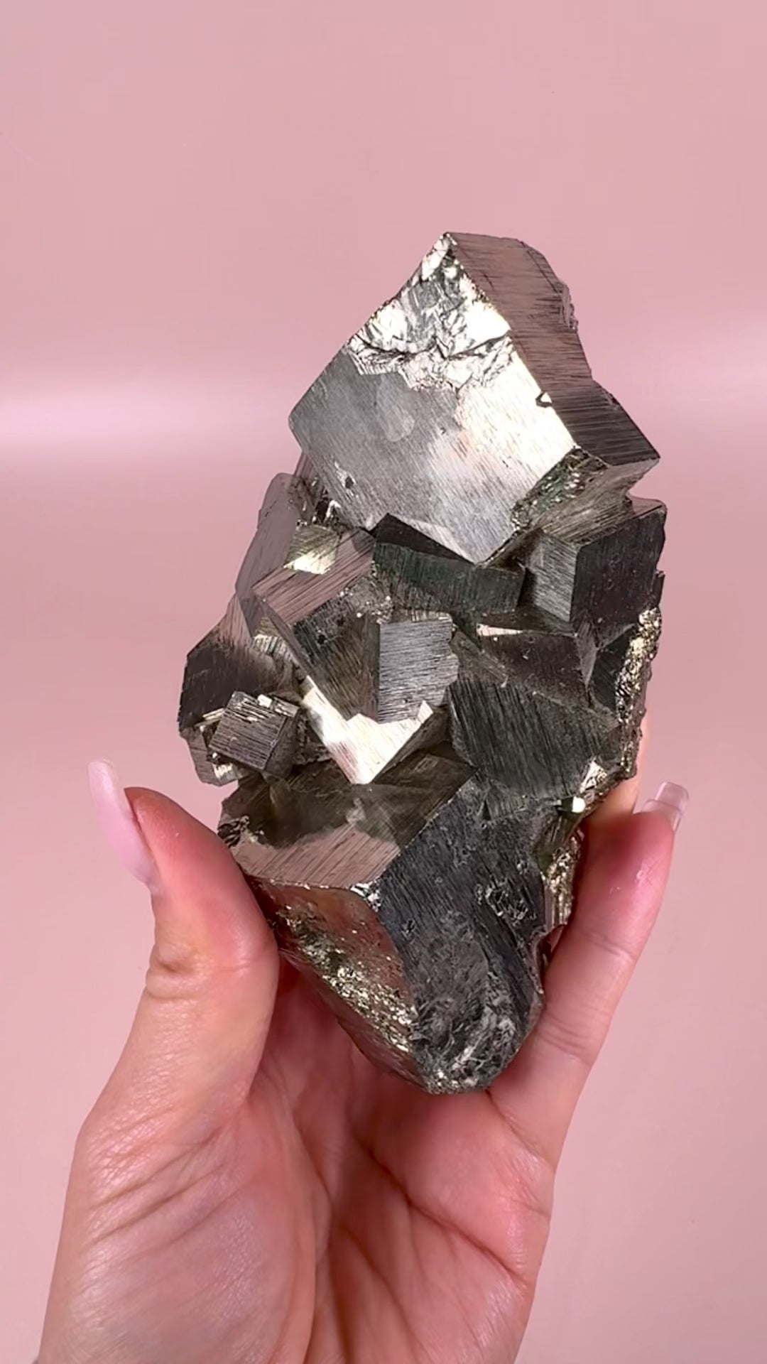 This is the exact piece you will receive. A striking, metallic iron sulfide mineral known as "Fool's Gold" for its gold-like appearance. Perfectly formed in cubic shapes, these pyrite cubes are intuitively chosen to provide you with a unique piece of nature's art.