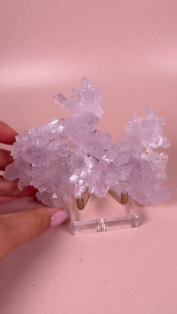 Red Fine Sugar Druzy Rainbow Amethyst with Calcite on Stand