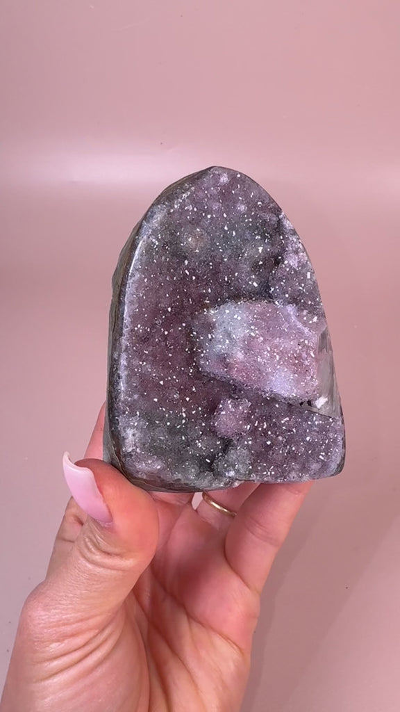 Pink Sugar Rainbow Amethyst Calcite Cut Base