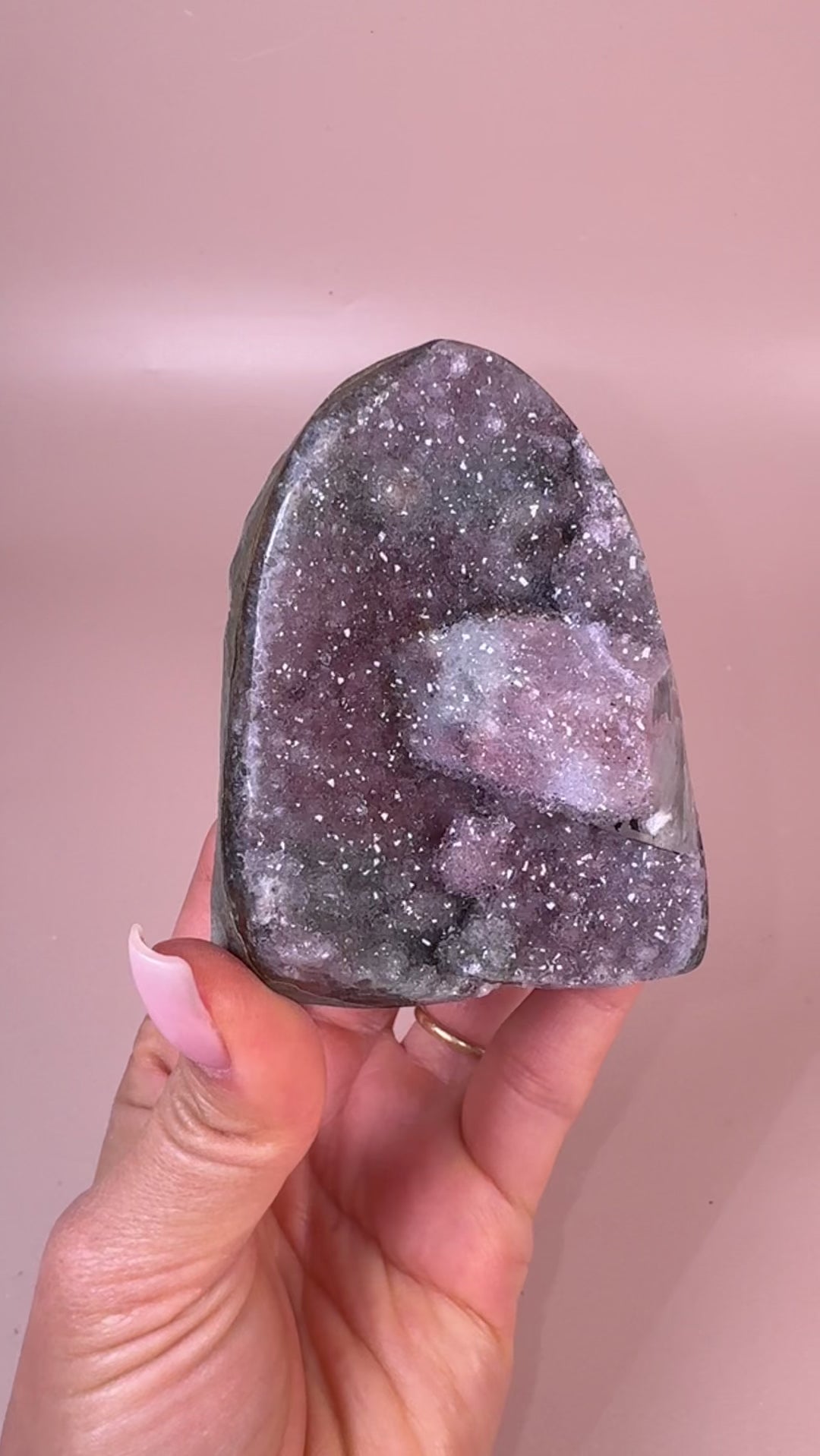 Pink & Blue Sugar Calcite Rainbow Amethyst Cut Base