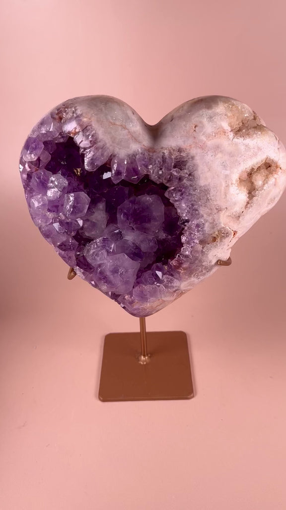 Pink & Lavender Portal Rainbow Amethyst Heart Shaped Double Sided Druzy Sphere