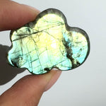 This listing is for (1) Intuitively Chosen Labradorite Mini Cloud: a beautifully carved piece showcasing the mesmerizing labradorescence unique to labradorite. With its iridescent flashes of blue, green, gold, and sometimes purple, this mini cloud is perfect for any crystal collection or as a thoughtful gift. Each piece is intuitively chosen and guaranteed to have stunning flashes.
