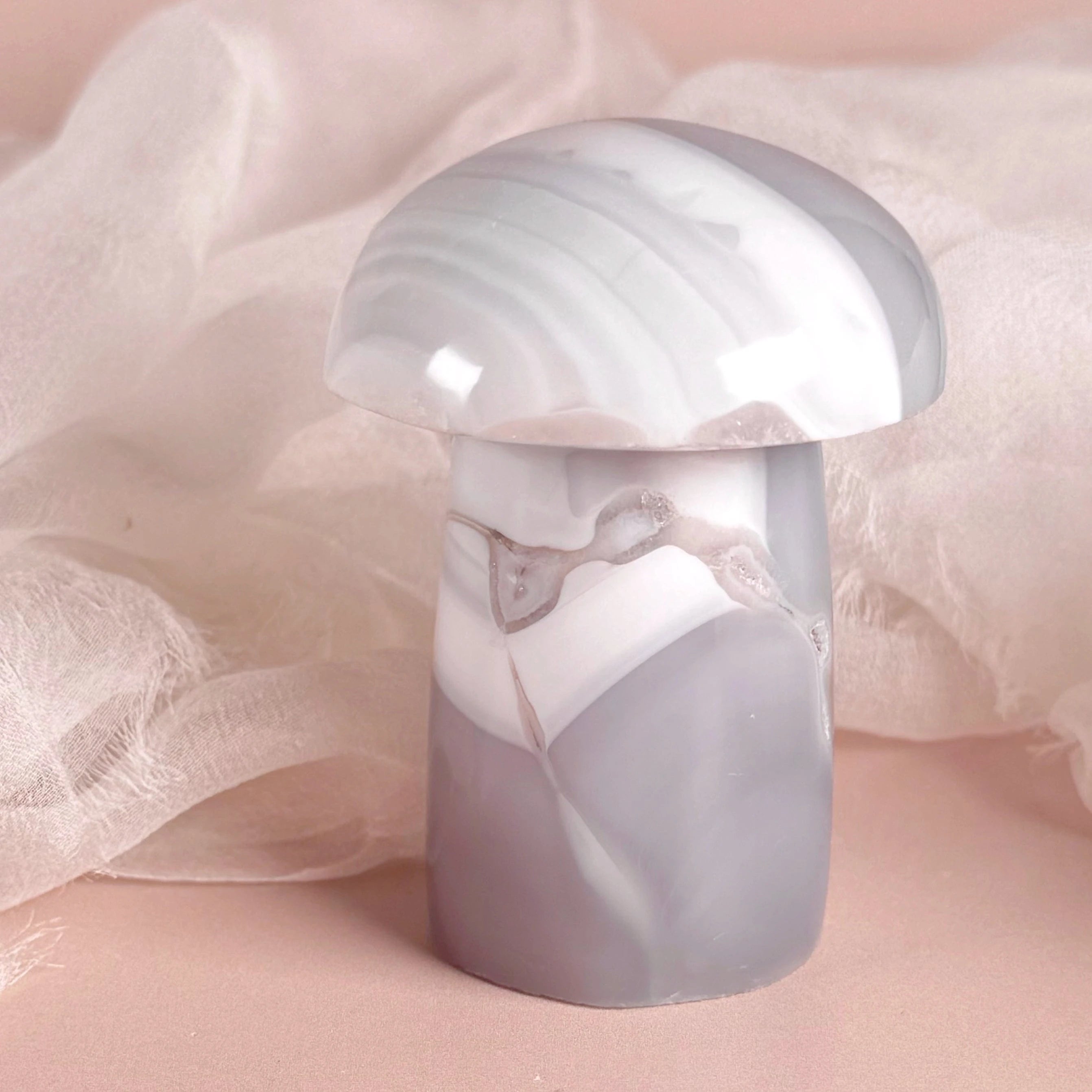 This Agate Mushroom is the exact piece you will receive. A beautifully crafted piece known for its fine grain and bright, often banded colors. Agate is appreciated not only for its aesthetic appeal but also for its grounding and balancing energies.