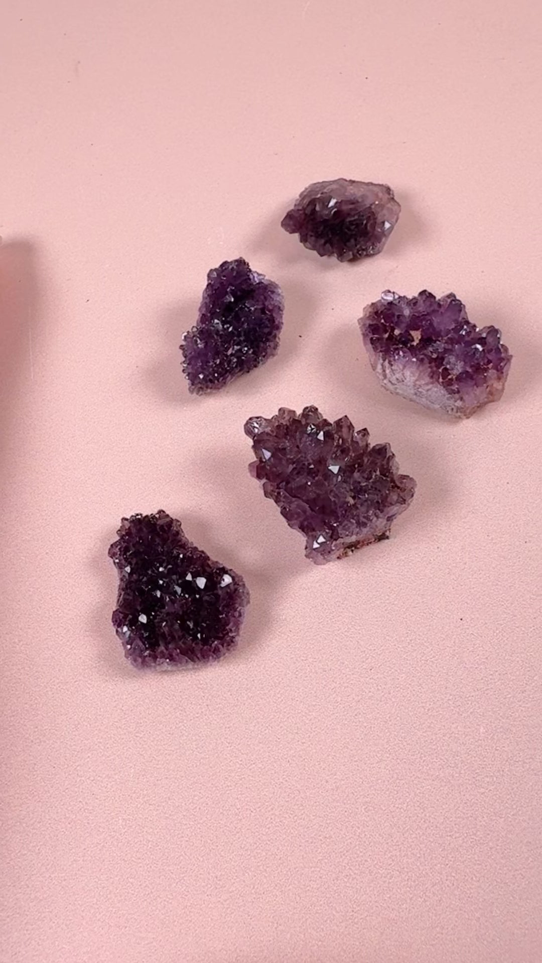 This listing is for (1) Intuitively Chosen Alacam Amethyst Mini Druzy Good For Gridding: a beautifully crafted piece showcasing the natural beauty of amethyst. With its fine grain and vibrant purple color, this heart-shaped figure is a charming addition to any crystal collection.