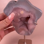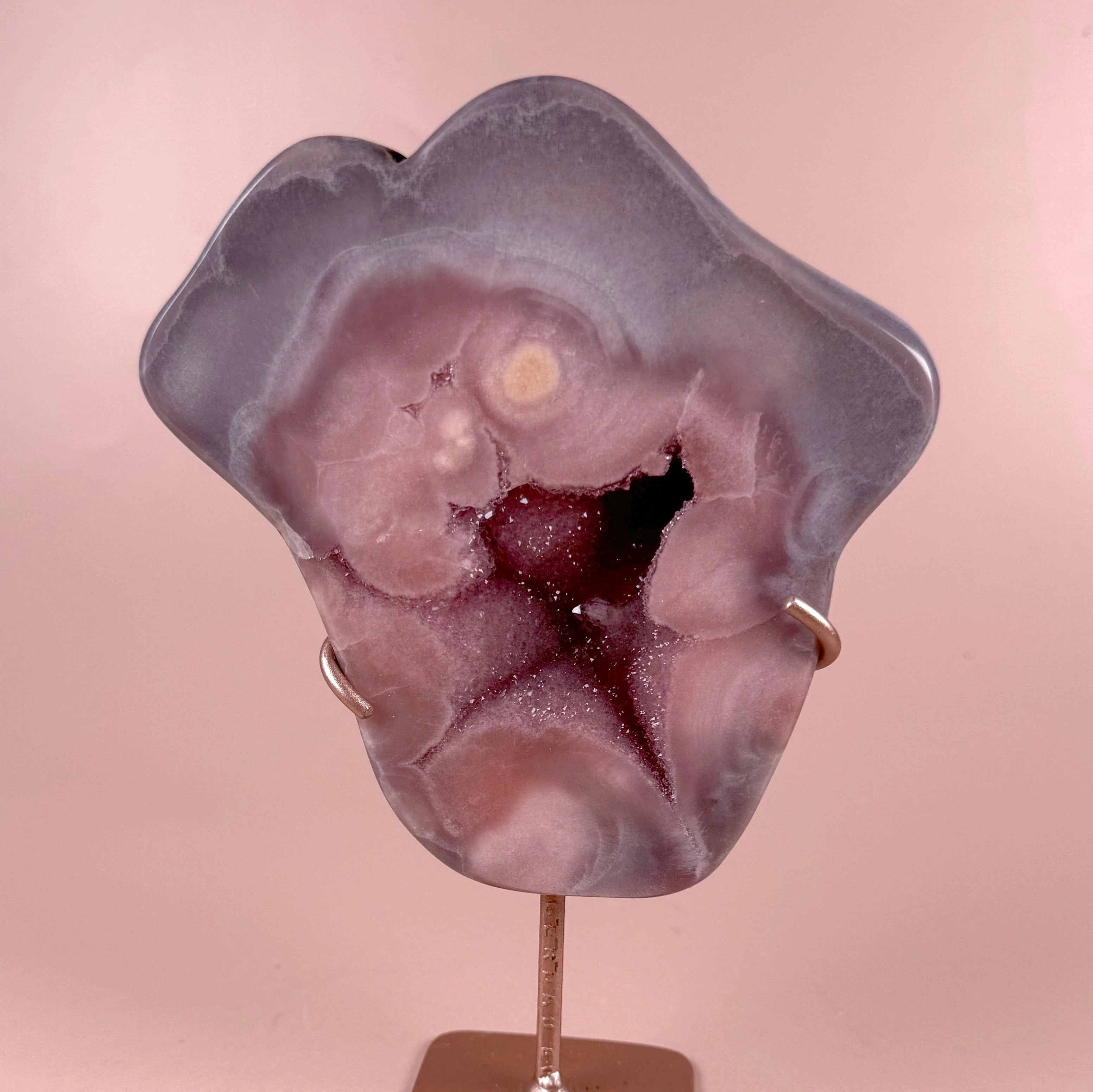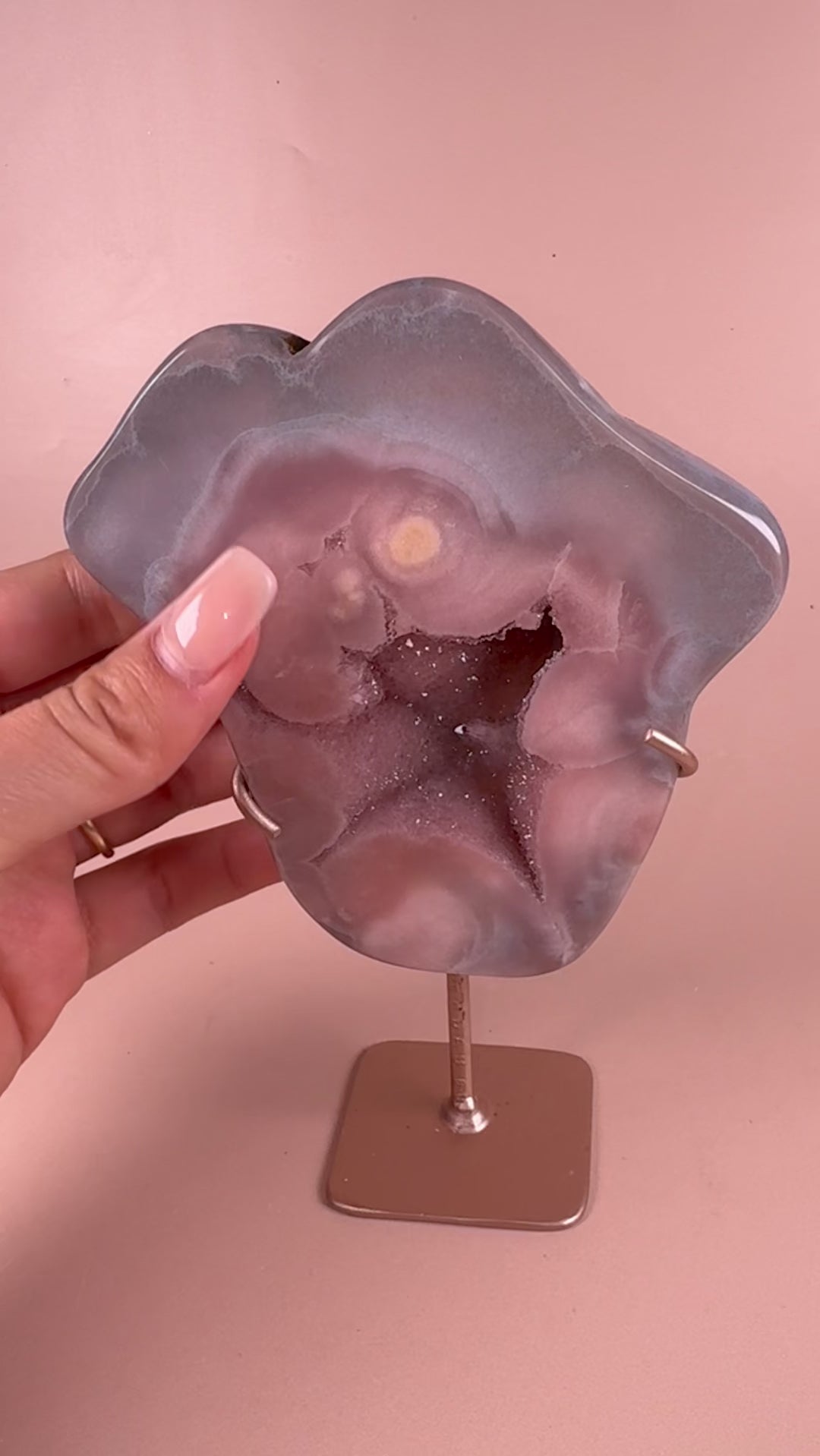 This Blue Pink Amethyst Druzy Slab with Stand is the exact piece you will receive. A stunning piece featuring the delicate pink hues of Pink Amethyst. This beautiful slab serves as an eye-catching decorative element and a powerful tool for emotional and spiritual healing.