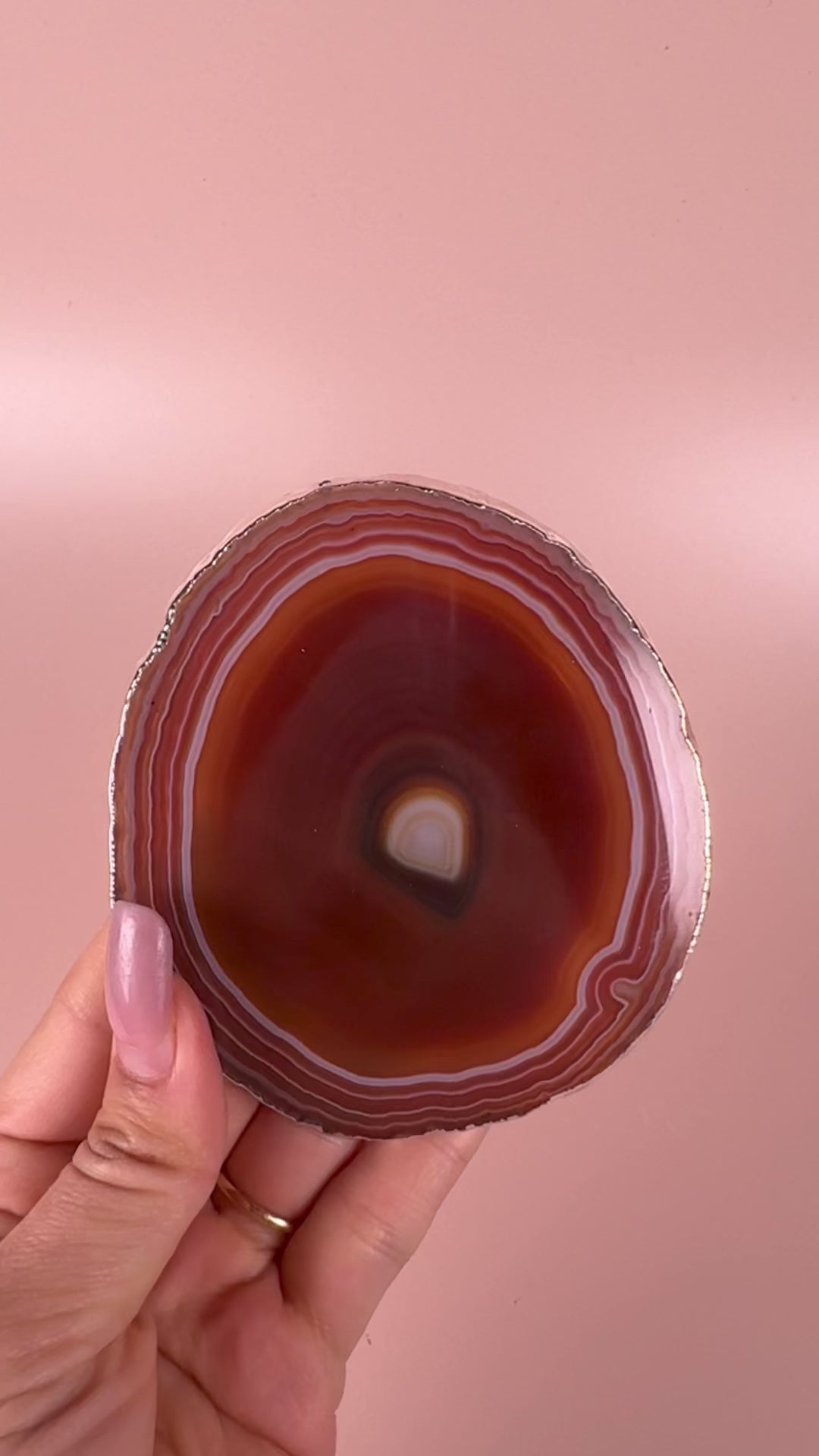 Carnelian Agate Coaster with Silver Electroplating