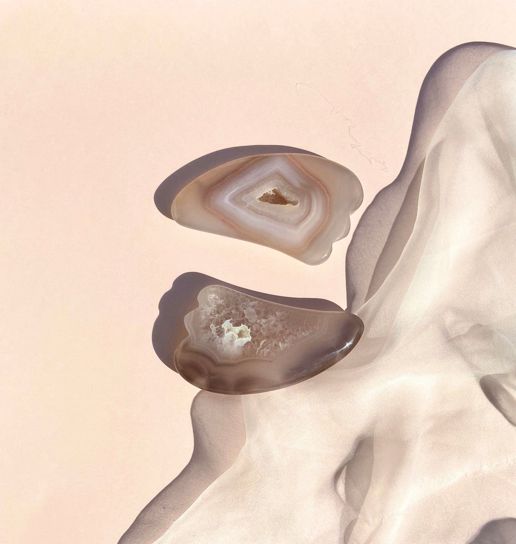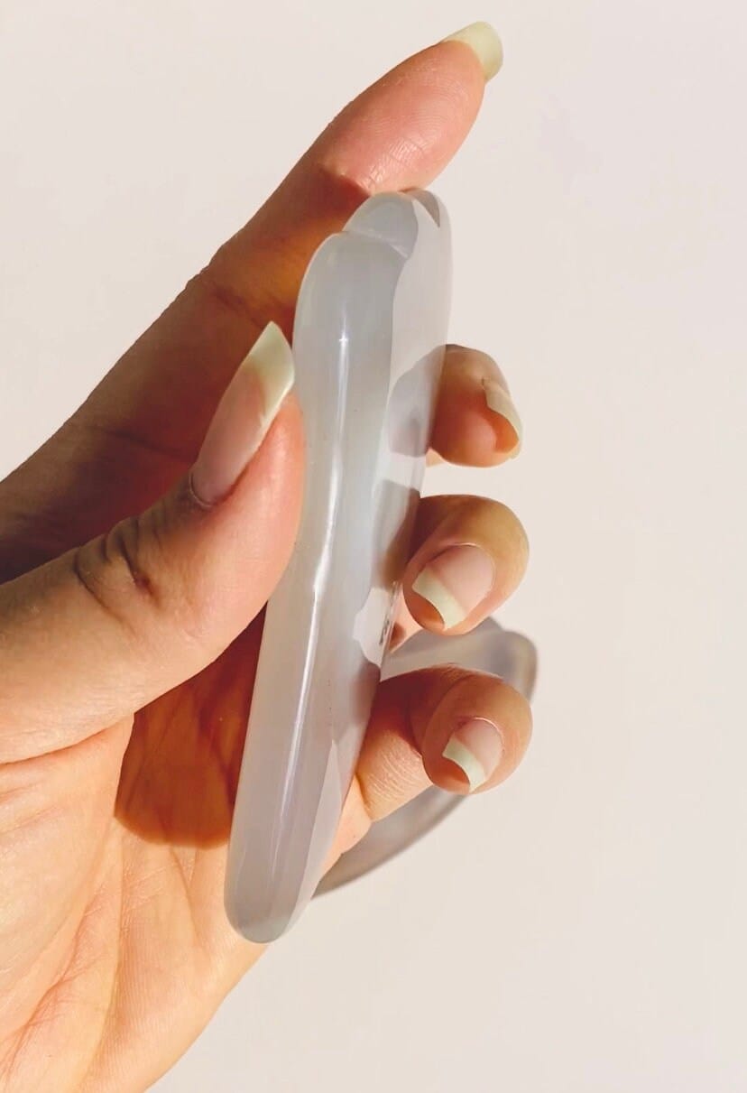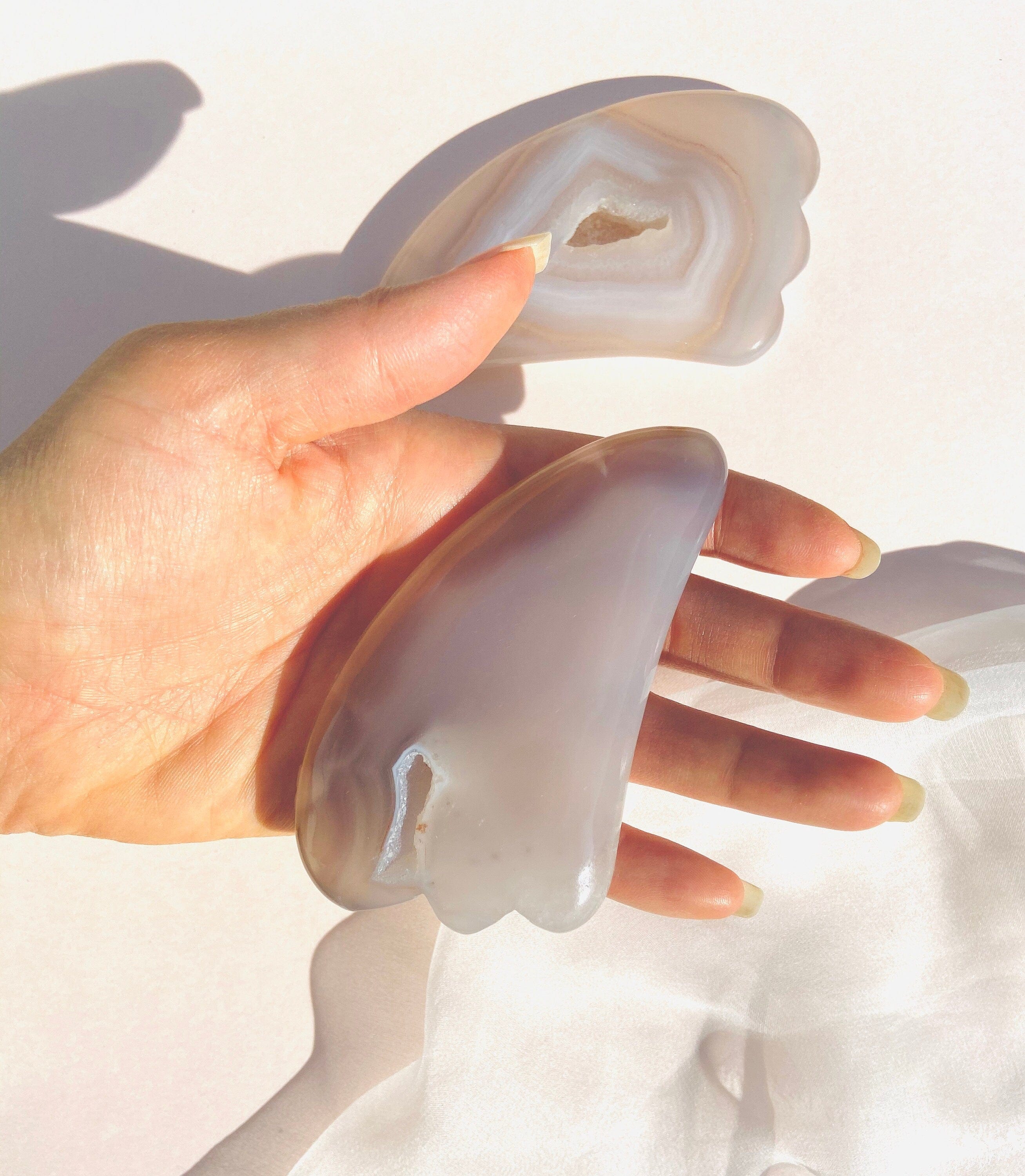 This listing is for (1) Druzy Agate Gua Sha Stone: a beautifully crafted tool for your skincare routine, known for its unique properties and stunning appearance. Each gua sha stone is similar but unique, showcasing the natural beauty of agate with its mesmerizing druzy sparkles.