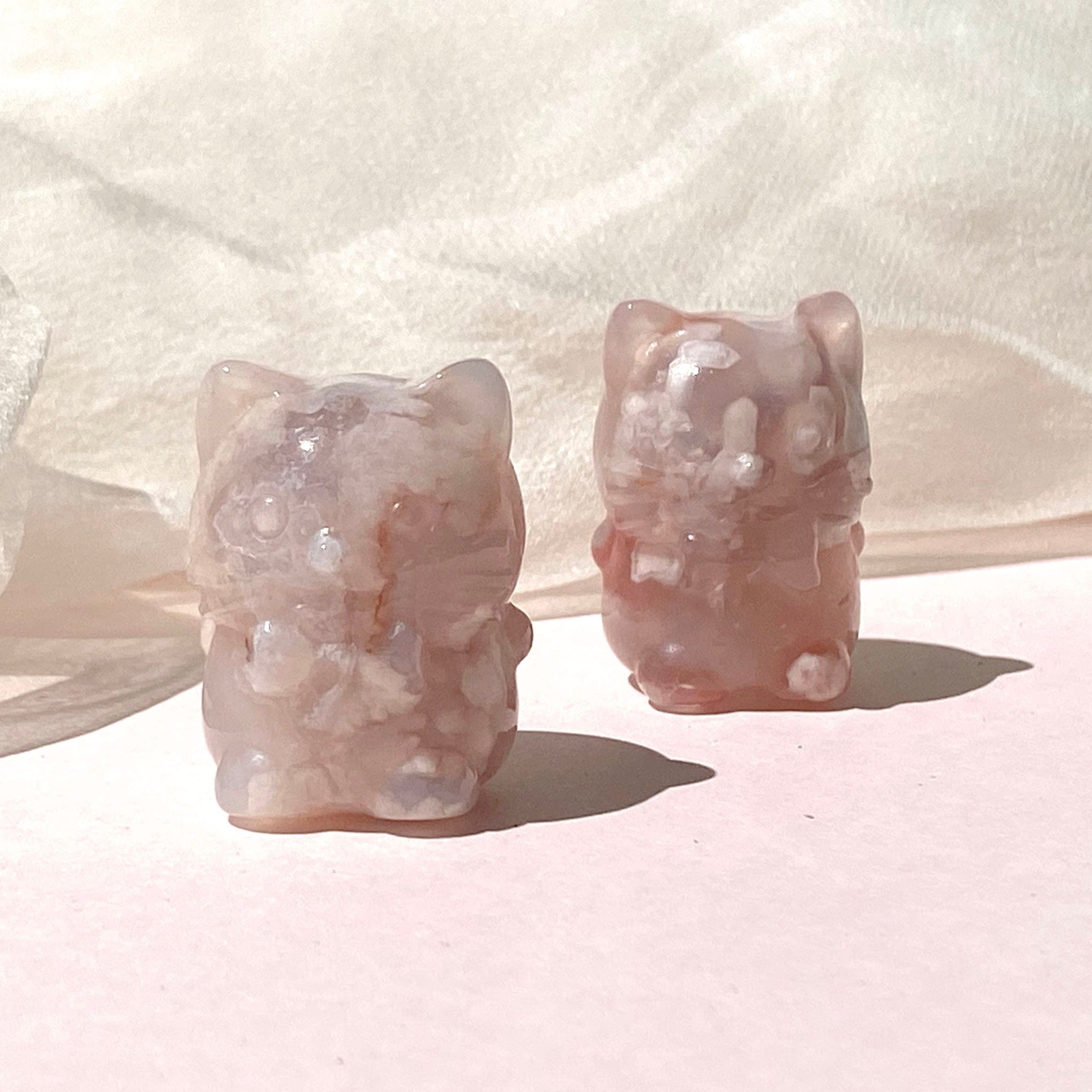 Flower Agate Mini Crystal Cats with Bowties