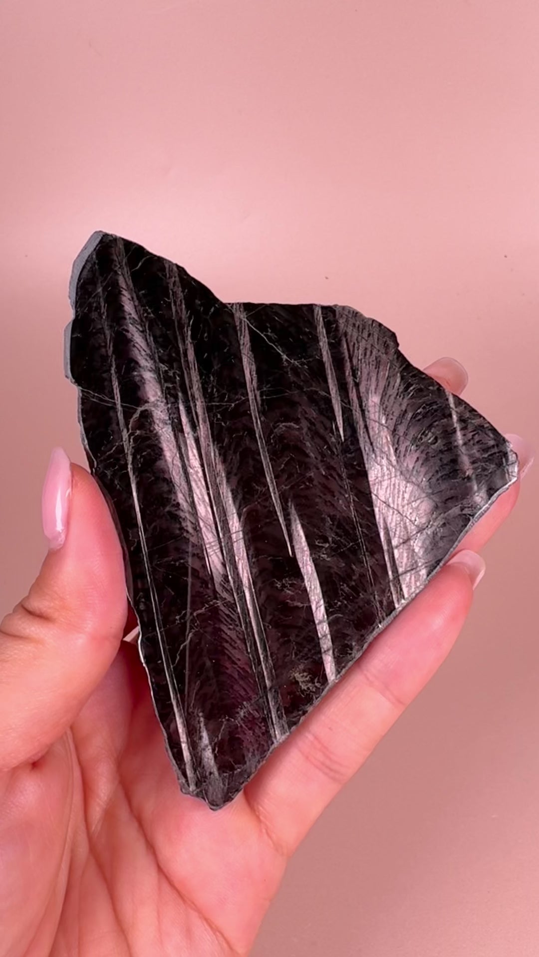 Polished dark crystal with silver-bronze shimmer, known for clarity, calm, and inner strength. Perfect for grounding, meditation, or display.