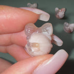 This listing is for (1) Intuitively Chosen Flower Agate Mini Sea Shell: a beautifully crafted piece showcasing the natural beauty of flower agate. Known for its unique and exquisite flower-like patterns, this mini shell carving is a charming addition to any crystal collection.