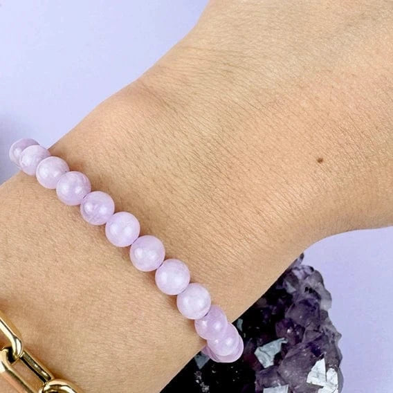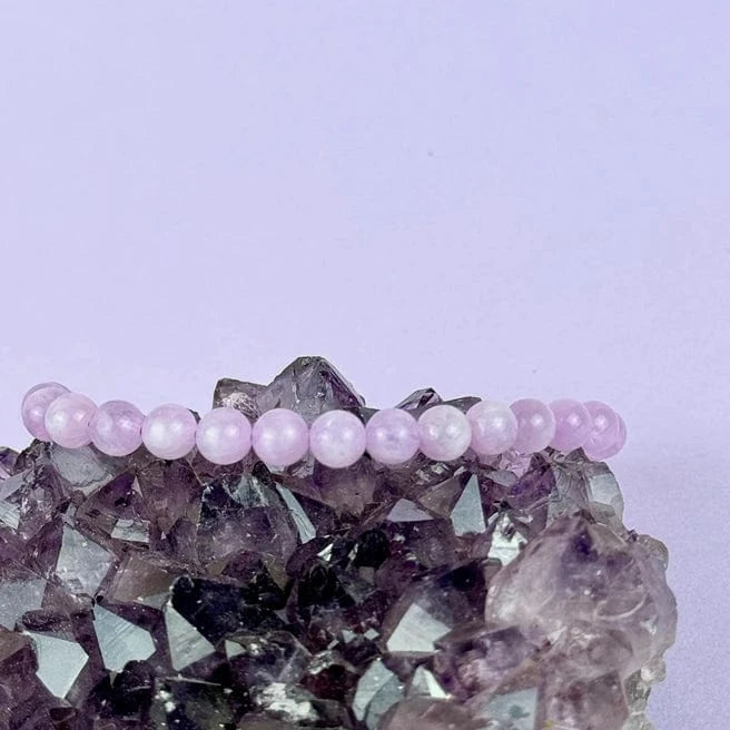 This listing is for (1) Kunzite Bracelet: a beautiful elastic bracelet made from 6mm Kunzite beads. Known for its soothing energy and emotional healing properties, this bracelet comes with a handwritten note, an instructional card, and is packaged securely in an Esté box.