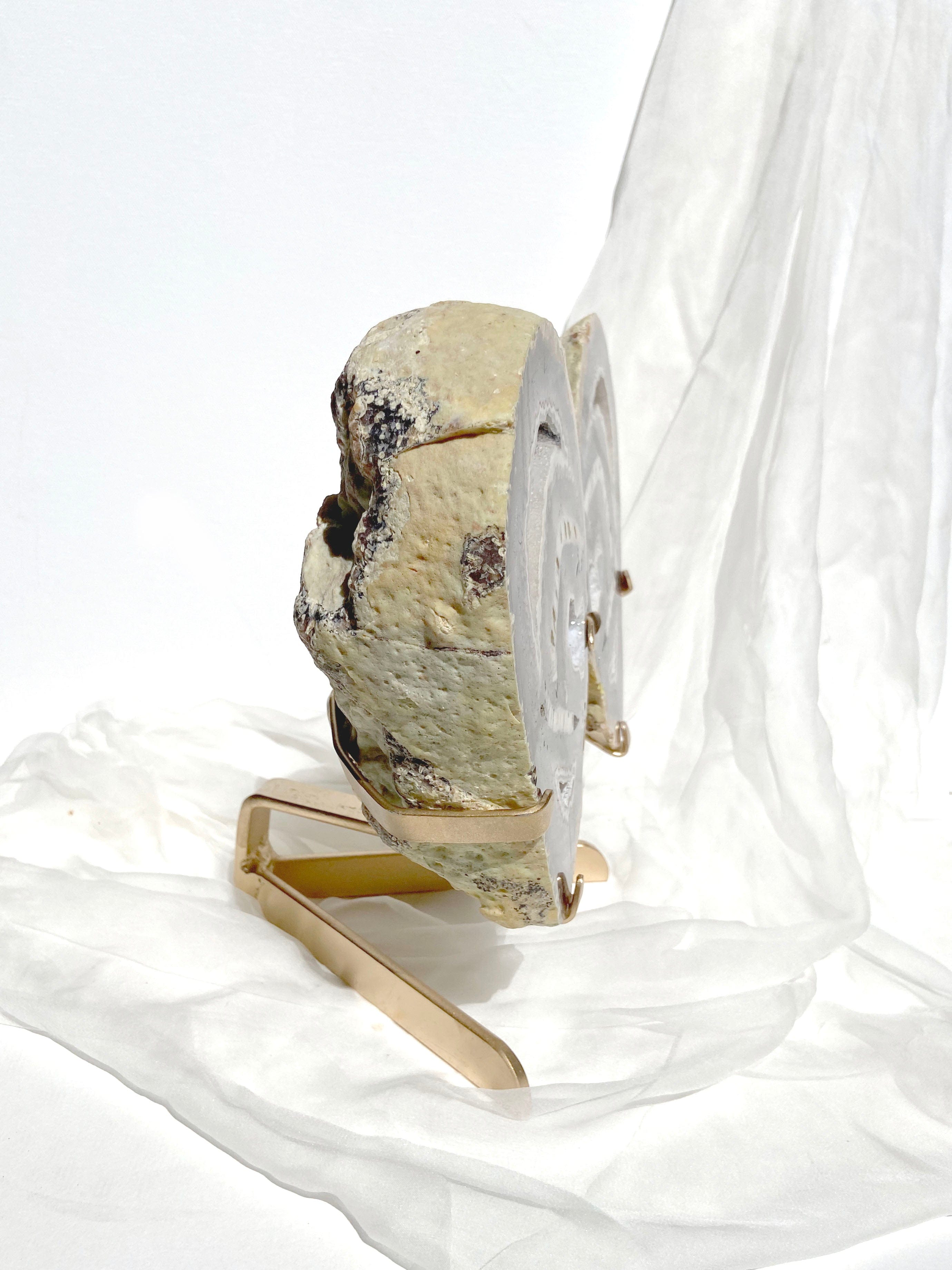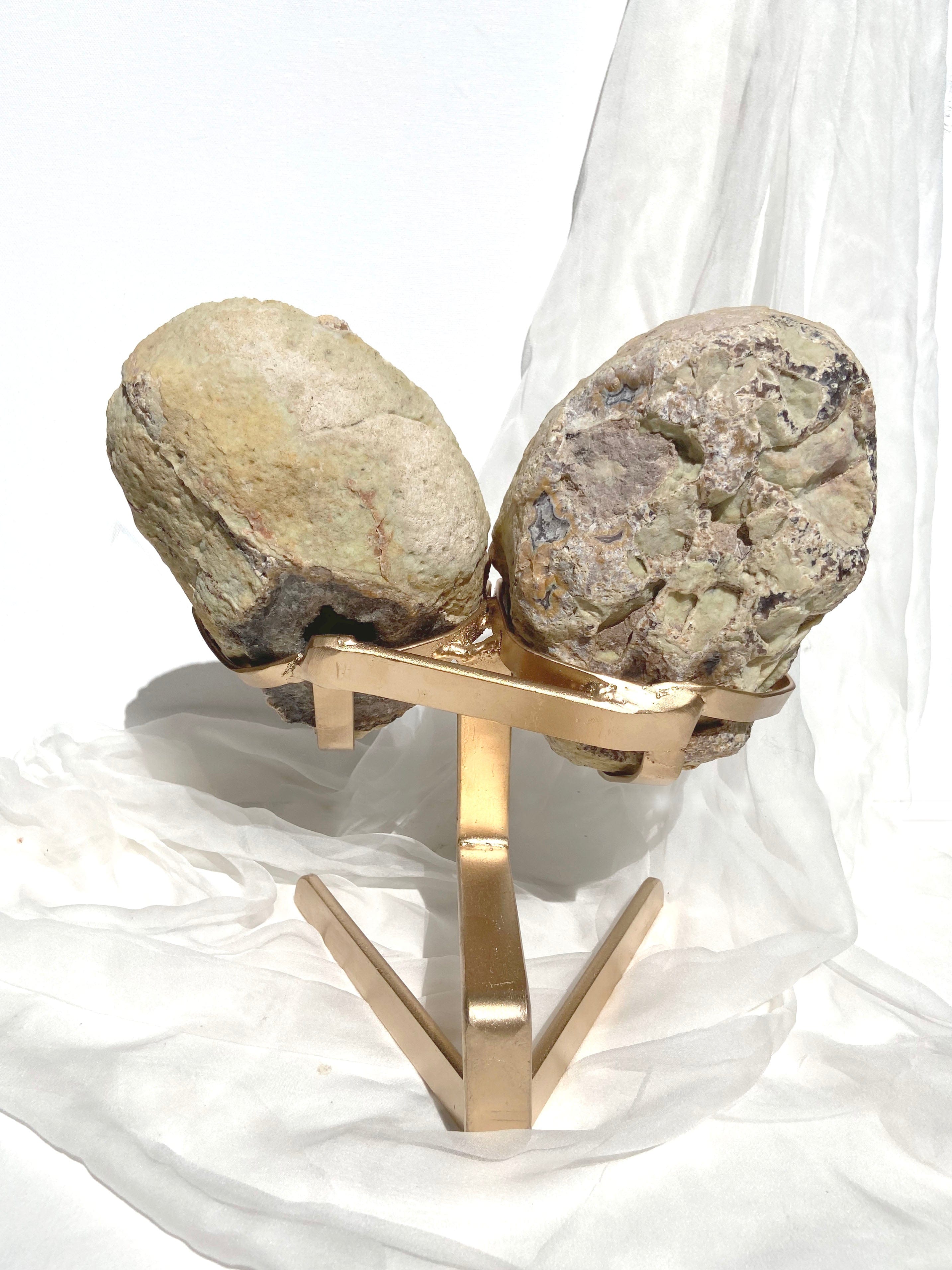 These stunning agate butterfly wings feature a beautiful array of taupe, grey, and brown shades. When expertly styled, these butterflies become captivating eye-catching statements in any home. Each wing of this butterfly features three druzy caves that beautifully mirror each other, revealing intricate details upon closer inspection.