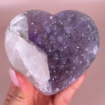 This is the exact piece you will receive. A beautifully crafted piece showcasing the natural beauty of amethyst. This heart radiates the calming and soothing energy of amethyst, making it a perfect addition to any crystal collection.
