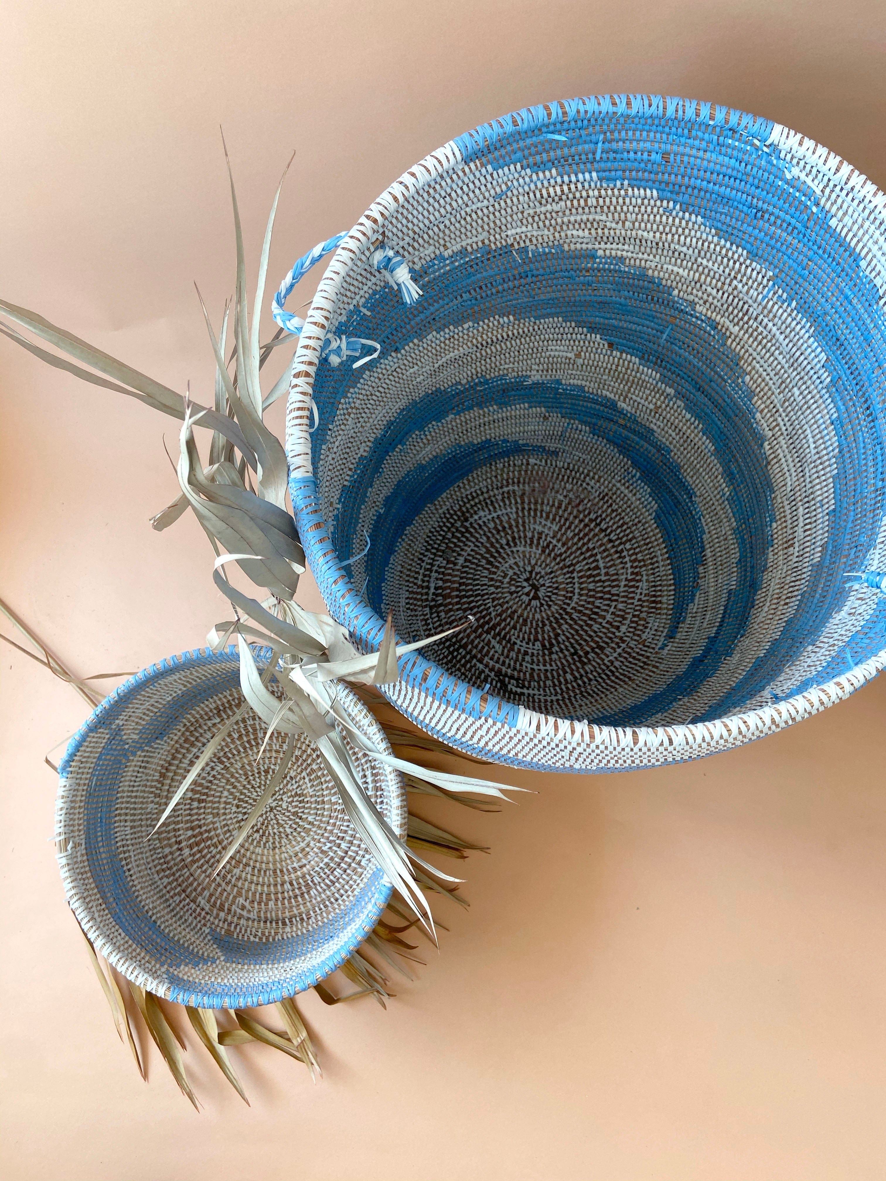 Our vibrant handwoven baskets are made by women artisans, each woven with seagrass and recycled plastic. This ethical sourcing supports sustainable practices and empowers the artisans.