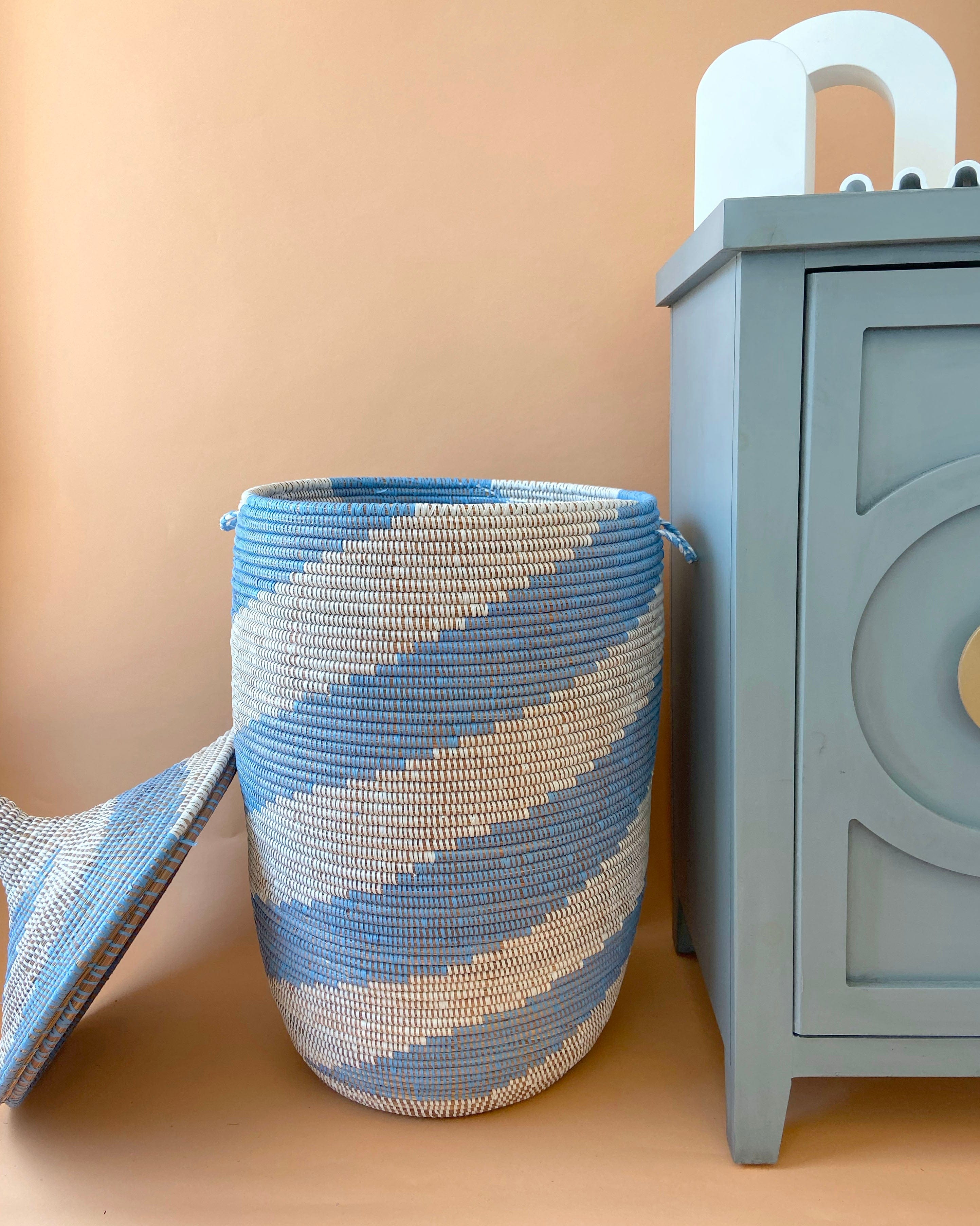A large handwoven Periwinkle hamper basket with a lid is not only a stylish accessory but also a versatile storage solution. Its most common role is as a laundry hamper, holding dirty laundry and keeping rooms neat. However, its utility stretches beyond this. In homes with limited closet space, it can be a reservoir for extra linens, from sheets to towels. In children's rooms or play areas, it’s an excellent repository for toys, allowing easy access and clean-up. Craft enthusiasts can use it to organize yarns, fabrics, or other crafting materials. With changing seasons, it can store off-season clothing or holiday decorations, and placed near entryways, it can serve as a convenient spot for shoes. For the avid reader, it becomes a haven for magazines and books. Throw in decorative pillows or blankets, and it helps declutter living spaces. Active families can use it to store sports equipment, and in guest rooms, it can hold amenities for visitors. Pet owners can stow away toys, leashes, and grooming tools, and travelers can use it to keep travel gear organized.
