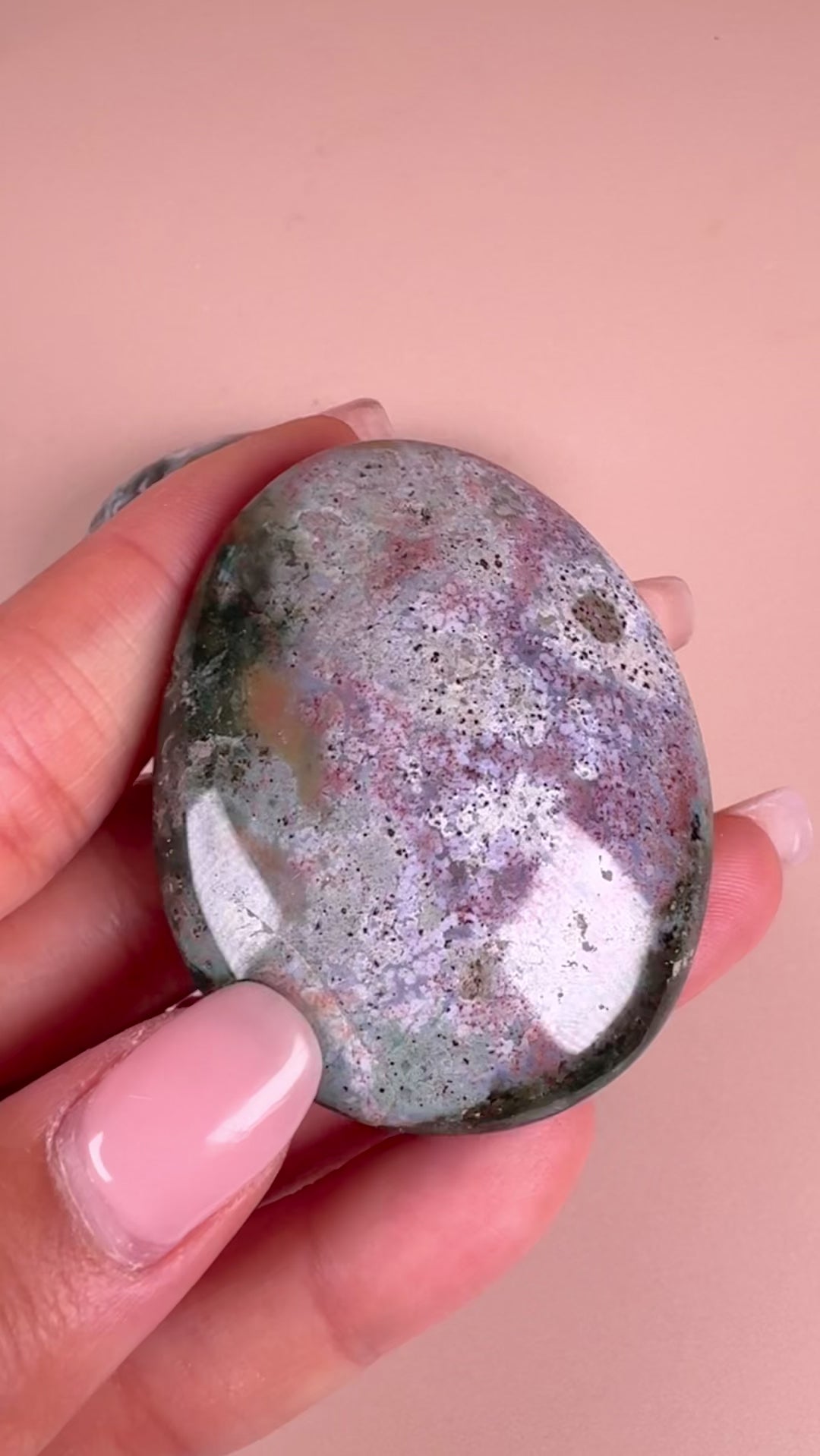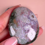 These Pastel Sea Jasper Palm Stones are the exact pieces you will receive. A stunning crystal that features unique orbicular patterns and calming pastel colors. Perfect for adding a touch of beauty and tranquility to any space, this rare variety of jasper is sure to captivate with its intricate design and soothing energy.