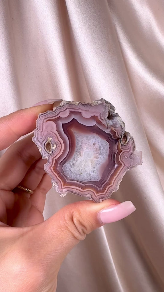 This is the exact piece you will receive. A beautifully crafted piece showcasing the natural beauty of Laguna Agate. Known for its stunning range of colors and intricate, concentric banding, Laguna Agate is a highly prized variety of banded chalcedony, part of the quartz family. Originating from the state of Chihuahua in Northern Mexico, specifically the Ojo Laguna area, it's renowned for its exceptional quality and vibrant, multi-colored layers.