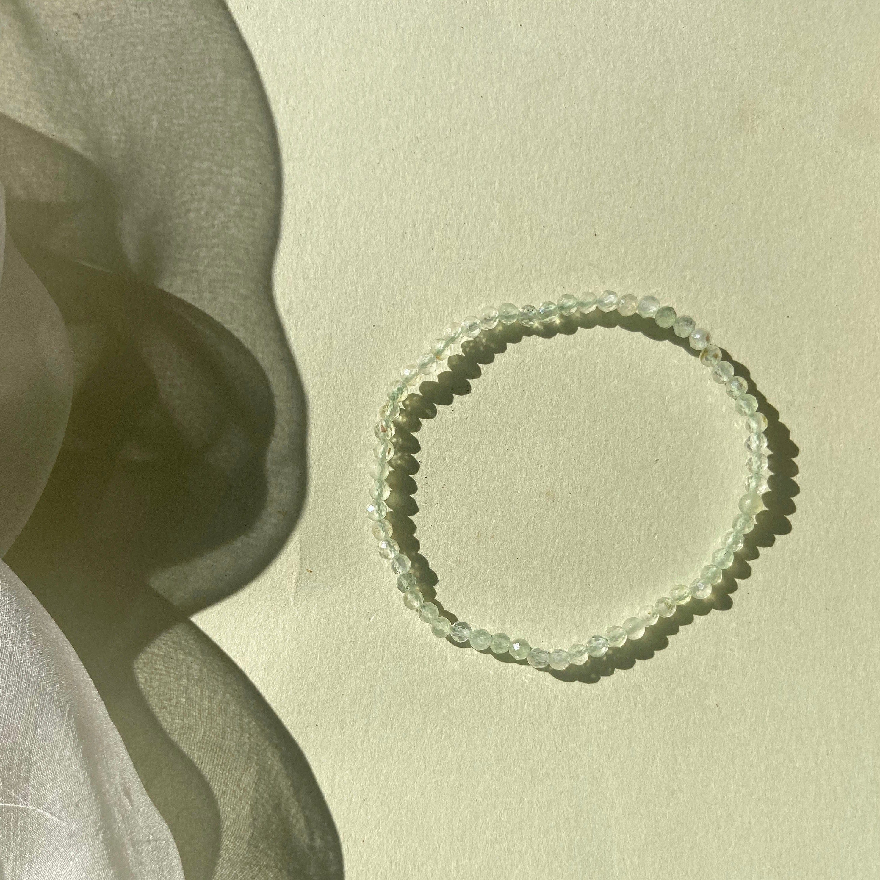 This listing is for (1) Prehnite Faceted Crystal Bracelet: a delicate elastic bracelet made from 4mm faceted beads of Prehnite. Known as the crystal of unconditional love, Prehnite is perfect for promoting emotional healing, forgiveness, and compassion. Each bracelet comes with an instructional card.
