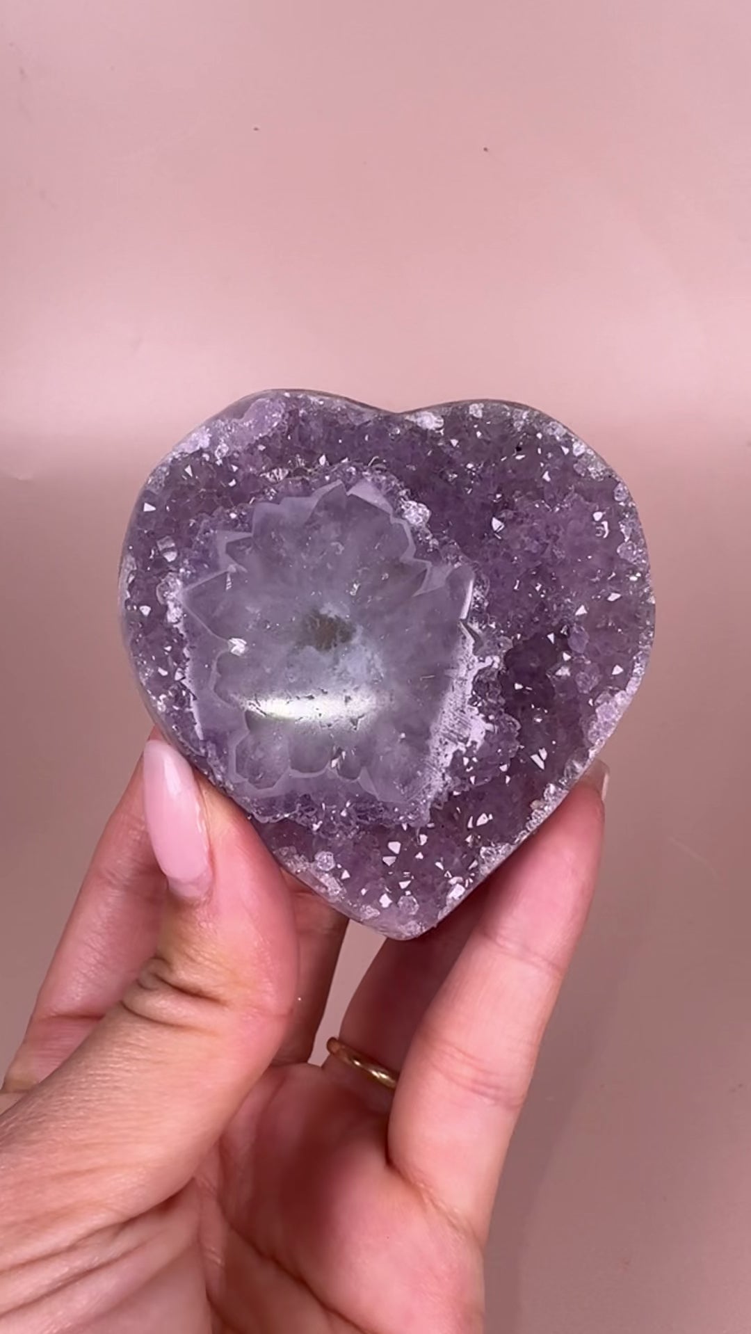 This is the exact piece you will receive. A beautifully crafted piece showcasing the natural beauty of amethyst. This heart radiates the calming and soothing energy of amethyst, making it a perfect addition to any crystal collection.