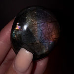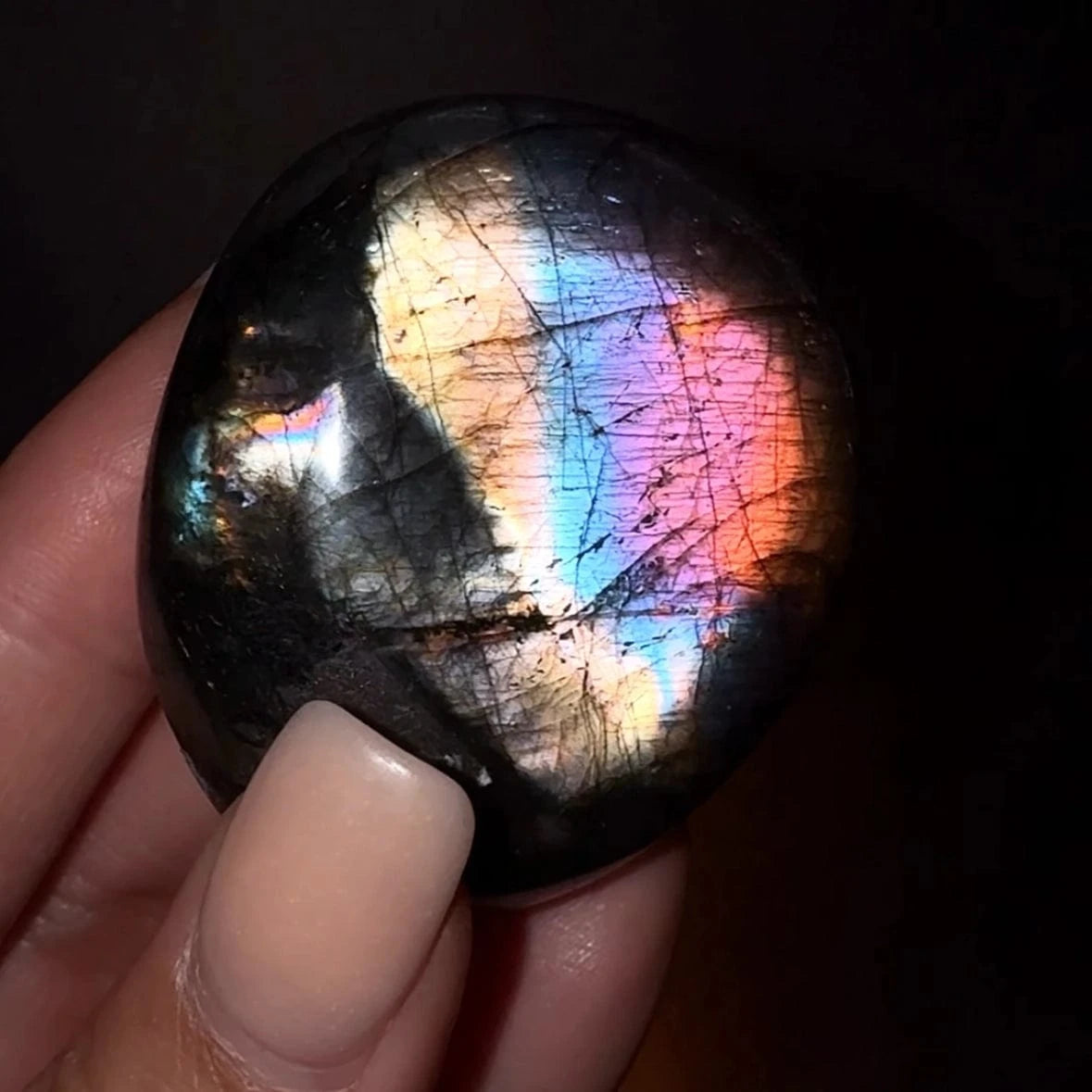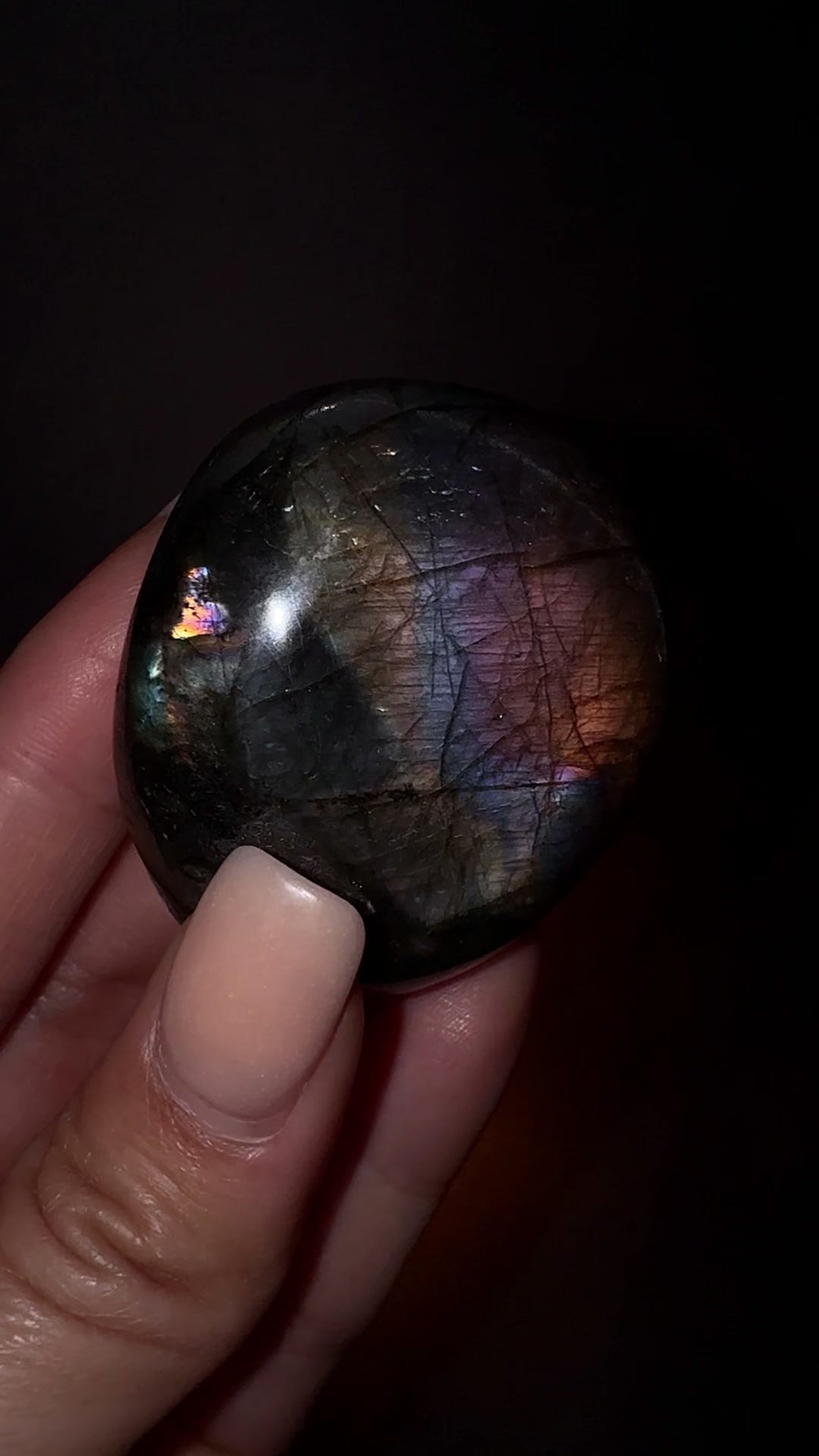 This Rainbow Flash Labradorite Palm Stone is a beautifully carved piece showcasing the mesmerizing labradorescence unique to labradorite. With its iridescent flashes of blue, green, gold, and sometimes purple, this mini cloud is perfect for any crystal collection or as a thoughtful gift. Each piece is intuitively chosen and guaranteed to have stunning flashes.