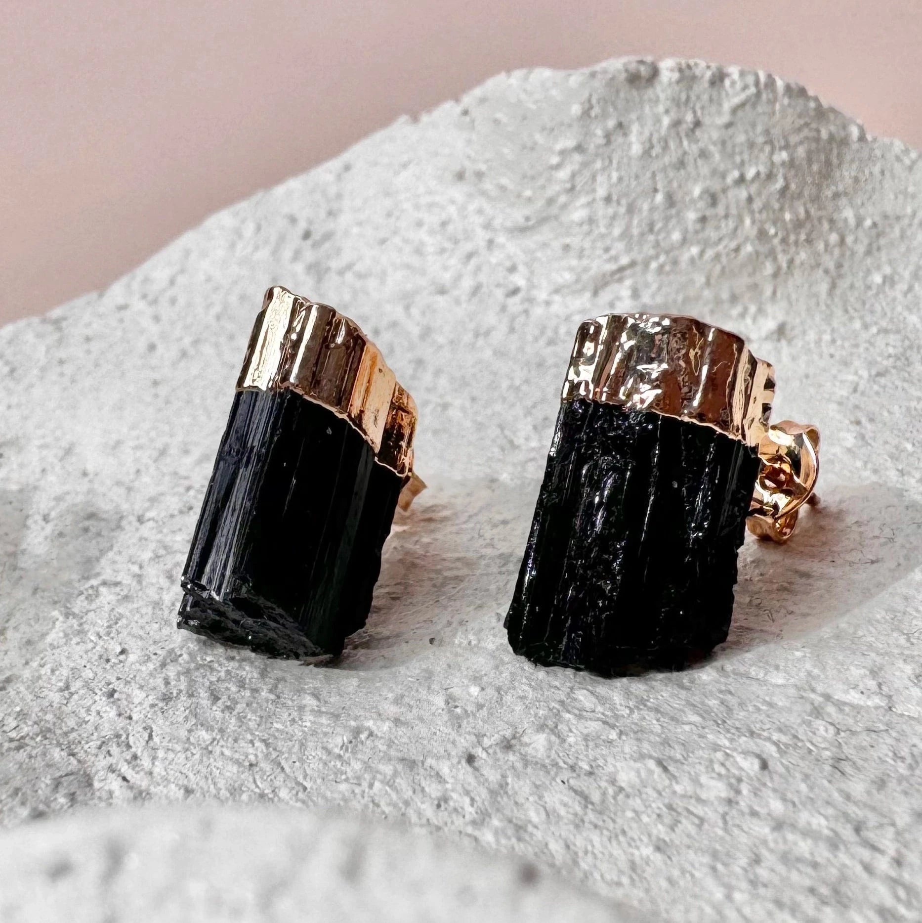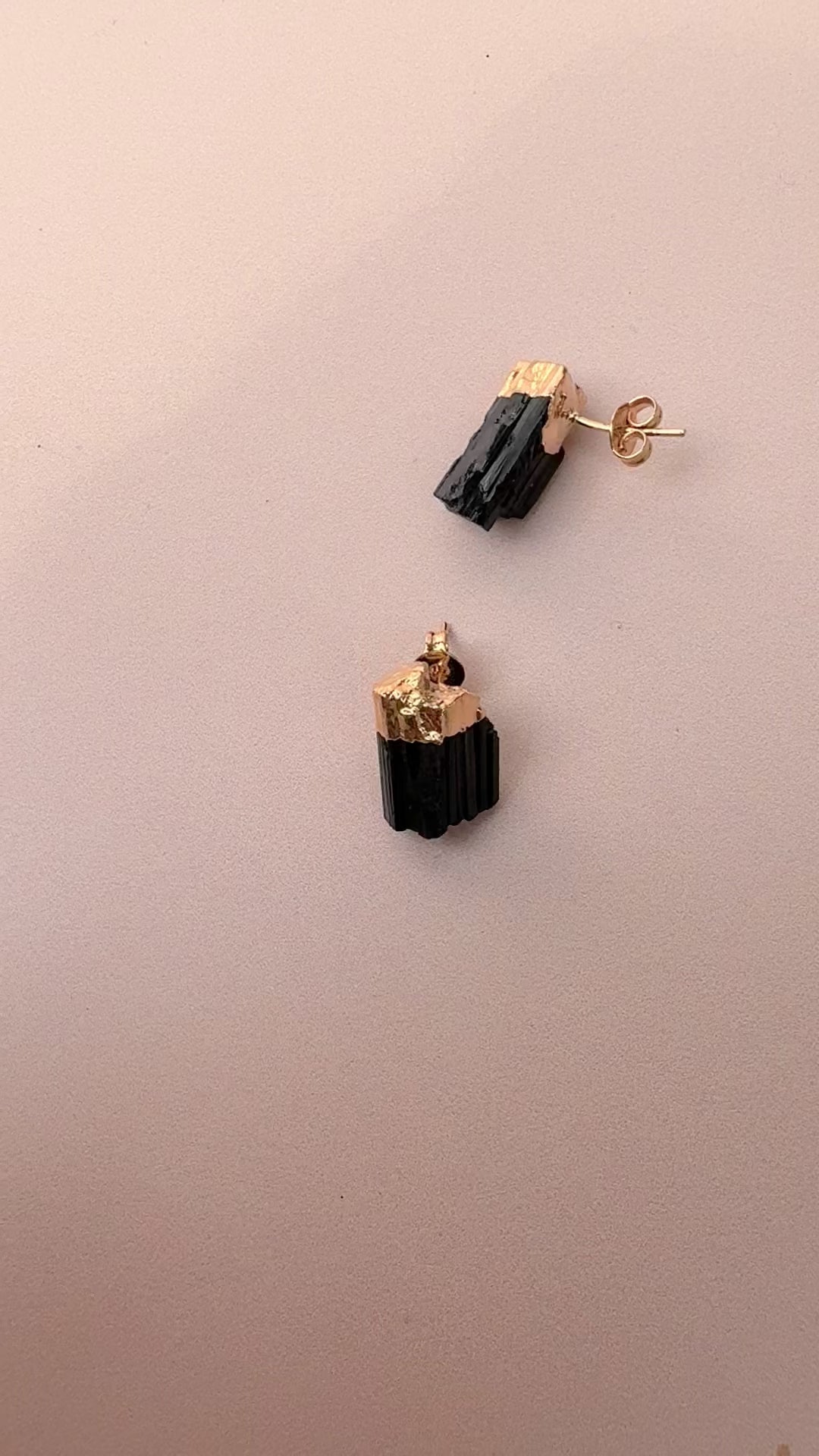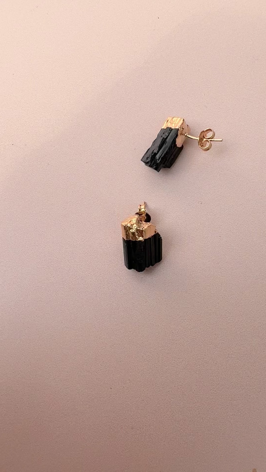 This listing is for (1) Pair of Intuitively Chosen Black Tourmaline Gold Electroplated Earrings. Known as one of the most protective crystals, Black Tourmaline helps absorb negative energy, block electromagnetic frequencies (EMFs), and keep your aura clear and balanced. These earrings are perfect for daily wear, especially if you're an empath, energy worker, or simply need support staying grounded in challenging environments.