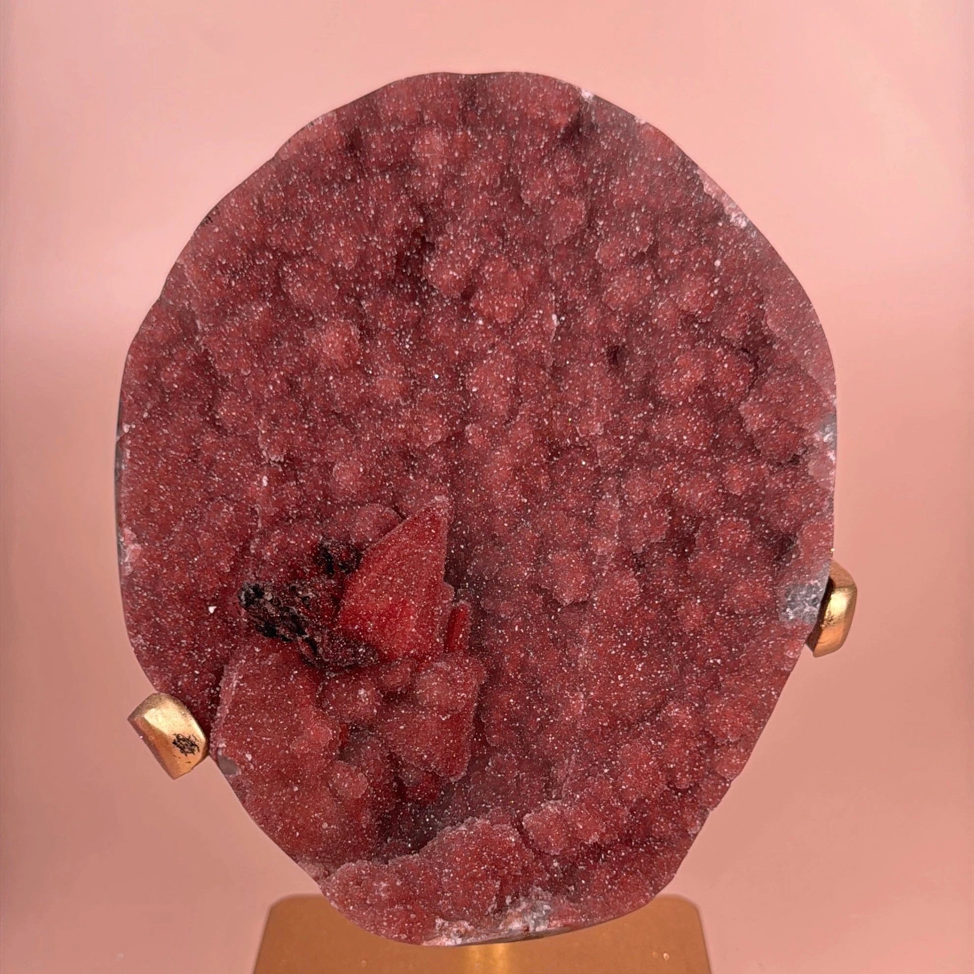 Red Fine Sugar Druzy Rainbow Amethyst with Calcite on Stand