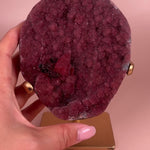 This Red Fine Sugar Druzy Rainbow Amethyst with a Stand is the exact piece you will receive. It is a beautifully crafted piece showcasing the natural beauty of amethyst. This piece radiates the calming and soothing energy of amethyst, making it a perfect addition to any crystal collection.