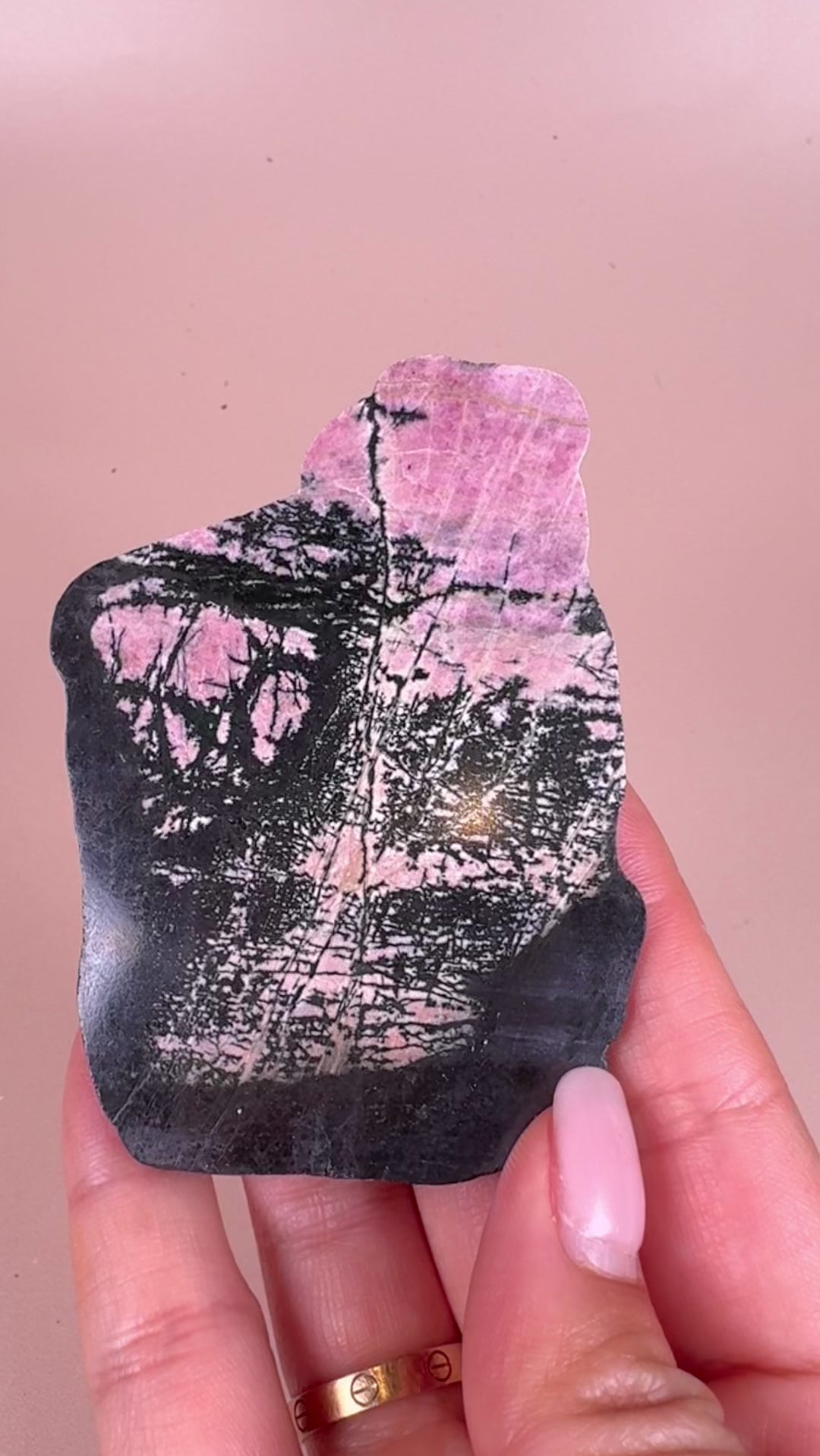 Rhodonite Slab – Hand-polished and rich in pink and black patterns, this crystal slab is perfect for display, crystal charging, or as an altar base. Known for its heart-healing energy, Rhodonite promotes compassion, emotional balance, and self-love.