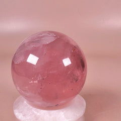This extraordinary rose quartz sphere is anything but ordinary. Featuring a raredouble stareffect, it shimmers beautifully under light—revealing not just its radiant pink glow, but also golden healer inclusions and flashes of sparkly pyrite. The combination of these rare minerals adds layers of warmth, abundance, and energetic amplification to the classic heart-healing energy of rose quartz. A true collector’s piece that blends love, light, and a touch of magic.