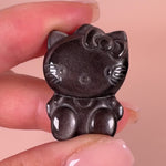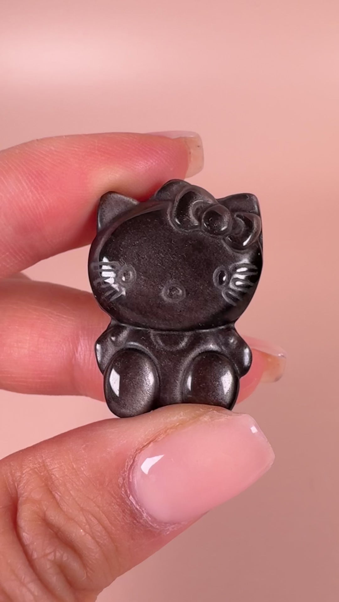 This listing is for one Intuitively Chosen Silver Sheen Obsidian Hello Kitty. A beautiful carving symbolizing strength, femininity, and protection. Silver Sheen Obsidian is known for its unique reflective properties, adding a mystical shimmer that enhances its grounding and protective qualities.
