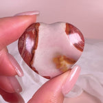 This Small Pink Polychrome Jasper Heart is the exact piece you will receive. Polychrome Jasper, also known as Desert Jasper, is a strikingly colorful and rare gemstone prized for its unique swirling patterns and grounding energies. This crystal embodies the Earth's warmth, blending vibrant hues of red, brown, green, and blue that capture the natural beauty of deserts and landscapes.